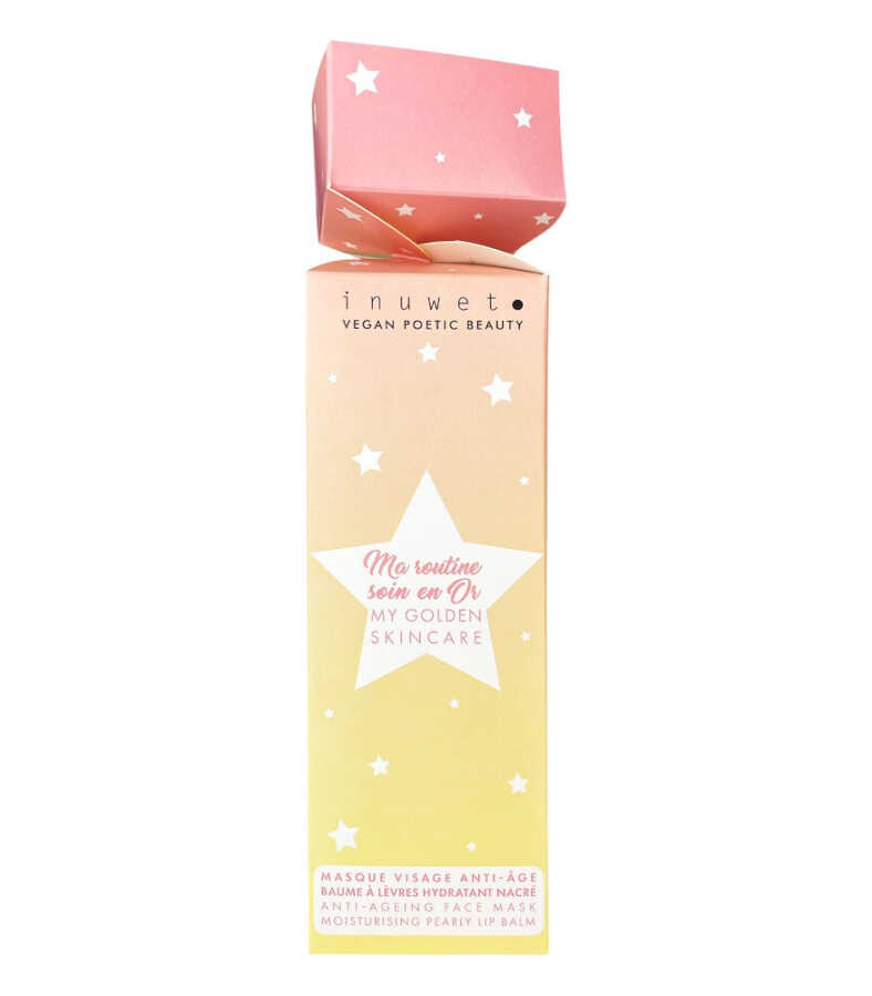 Çildi pürüzsüzleştiren ve aydınlatan yaşlanma karşıtı biyo-selüloz yüz maskesi ile dudaklara yumuşaklık ve besleyici bakım sağlayan, hoş kokulu metalik dudak balmından