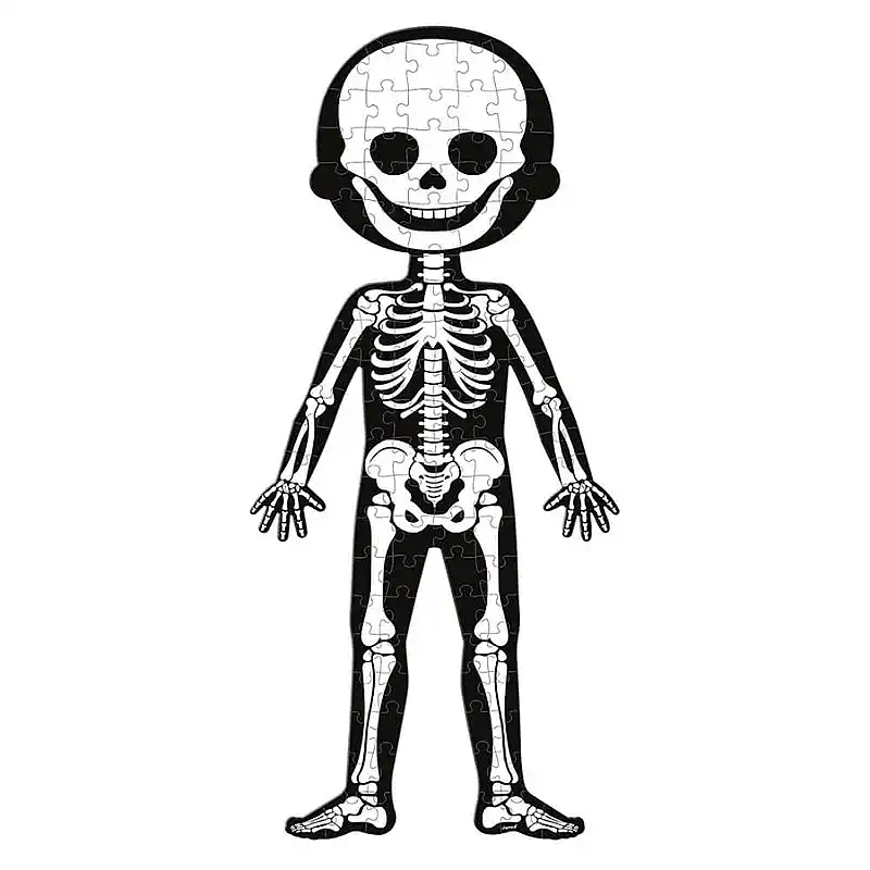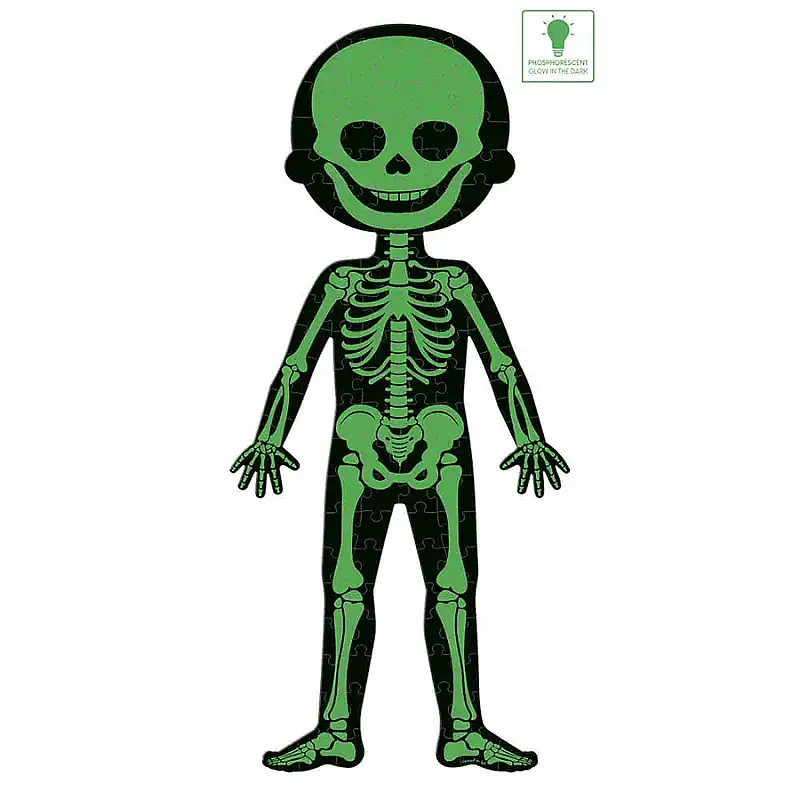 The set consists of a double-sided 50-piece boy/girl puzzle, a 75-piece puzzle featuring the organs of the human body, and a 100-piece glow-in-the-dark skeleton puzzle.
