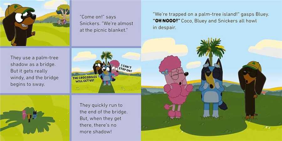 Parkta piknik yaparken, Bluey, Coco ve Snickers Shadowlands oyununu oynarlar.