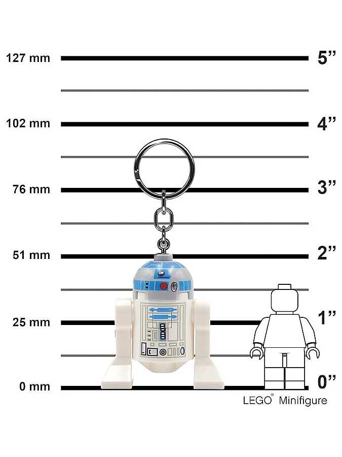 Resmi lisanslı LEGO Star Wars R2-D2 Anahtarlık Lambası, LED ışığı ve göğsünde açma/kapama düğmesi bulunmaktadır.