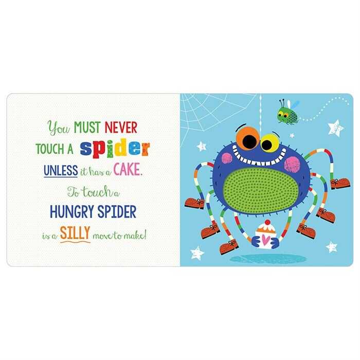 Gelince Haber VerNever Touch A Spider!, çocukların duyularını harekete geçirmek için tasarlanmış yenilikçi bir kitaptır. Her sayfada yer alan farklı silikon dokular, miniklerin dokunma duyusunu geliştirirken aynı zamanda hikayeye odaklanmalarını sağlar. Kitabın içindeki canlı renkler ve sevimli karakterler, çocukların görsel algısını güçlendirir. Okuması kolay, kafiyeli metinler ise dil gelişimine katkıda bulunarak erken yaştaki çocukların kelime haznesini genişletir. Bu kitap, sadece bir hikaye anlatmakla kalmaz, aynı zamanda çocuklara interaktif bir öğrenme deneyimi sunar.