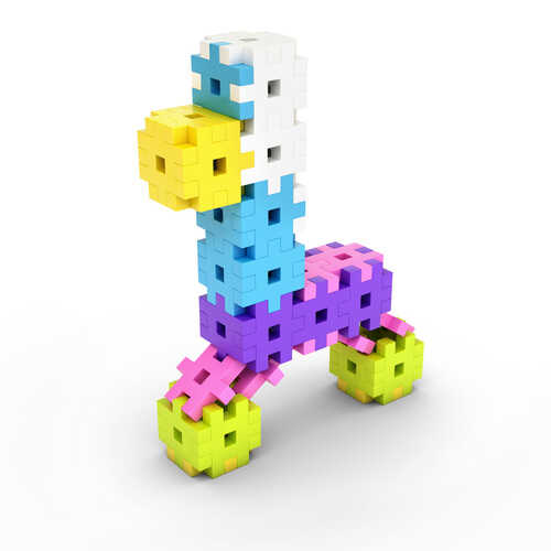 Yapboz parçalarını andıran tasarımı sayesinde çocuğunuz bu bloklarla hayal ettiği her şeyi inşa edebilir. Pembe ve mor tonların ağırlıkta olduğu yumuşak pastel renkler; köpek, midilli, ev gibi çeşitli şekiller oluşturmak için ilham verir. Oyun hiç sıkıcı hale gelmez.