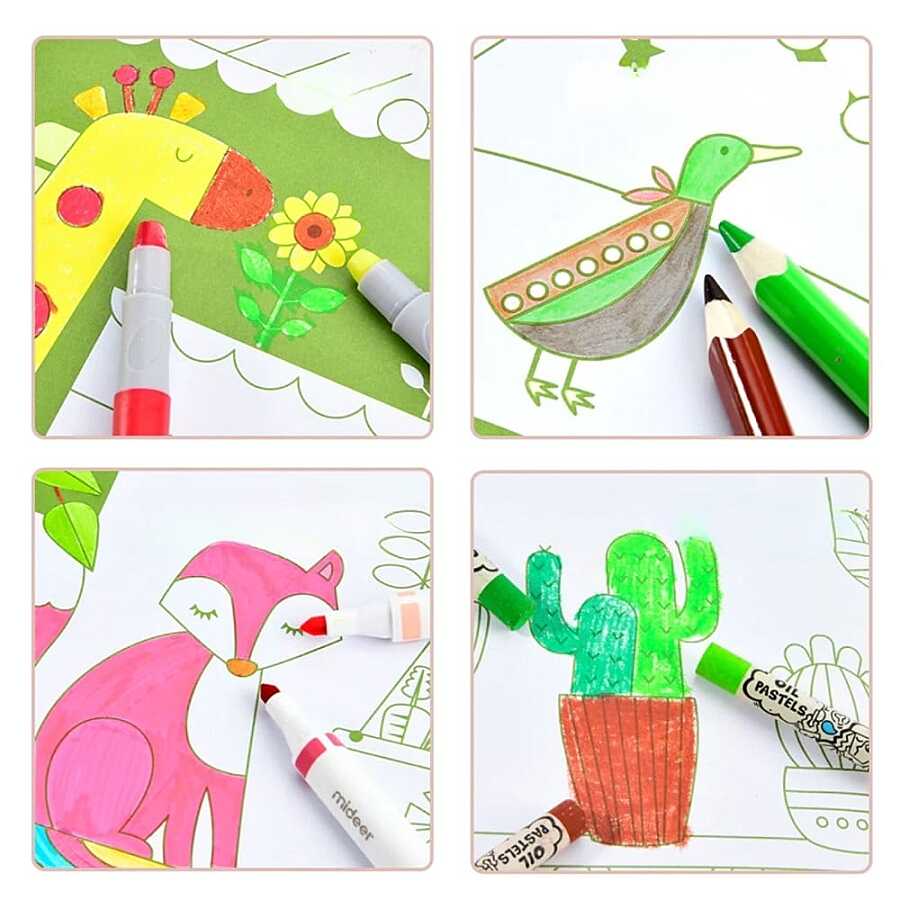 Her sayfa çocukların hayal dünyasını zenginleştiren farklı bir tema sunar. Eğlenceli ve yumuşak çizgi stili sayesinde boyama süreci daha akıcı ve keyifli hale gelir. Çeşitliliği sayesinde çocukların sıkılmadan vakit geçirmesine yardımcı olur.