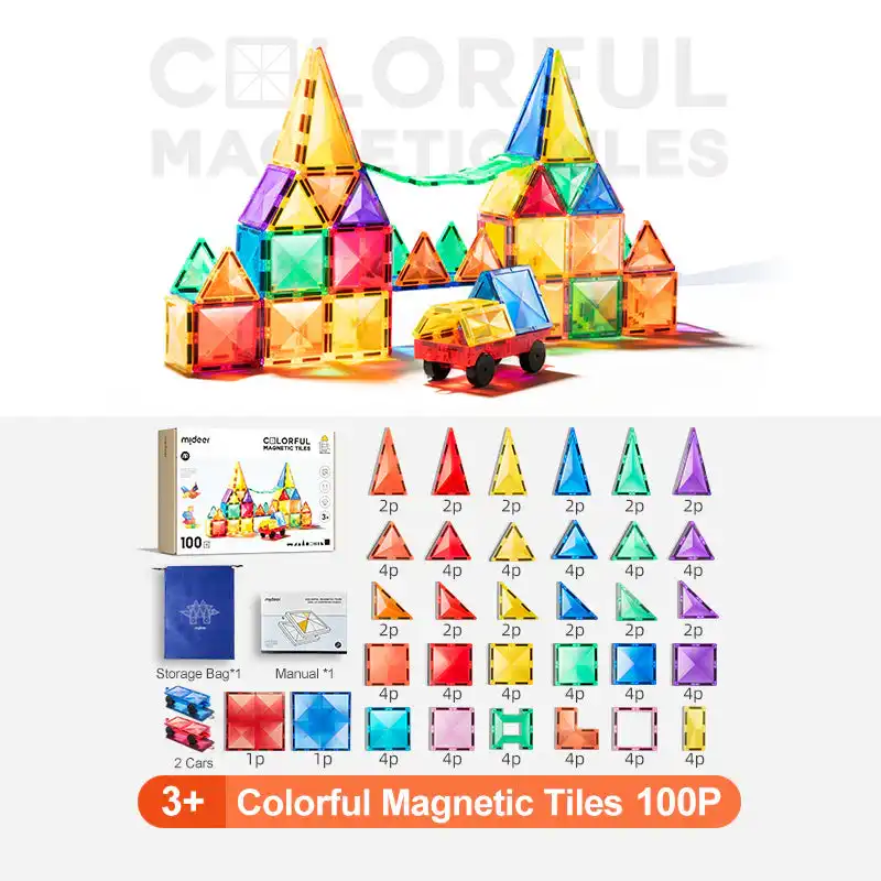 Mideer Renkli Magnetic Tiles – 100 Parça, çocukların yaratıcılıklarını serbest bırakabileceği, eğitici ve eğlenceli bir yapı setidir. Yüksek şeffaflığa sahip bu renkli manyetik bloklar, ışığın içinden geçerek büyüleyici yansıma ve gölge oyunları oluşturur. Güçlü mıknatıslar sayesinde yapılar sağlam ve dengeli bir şekilde inşa edilir.