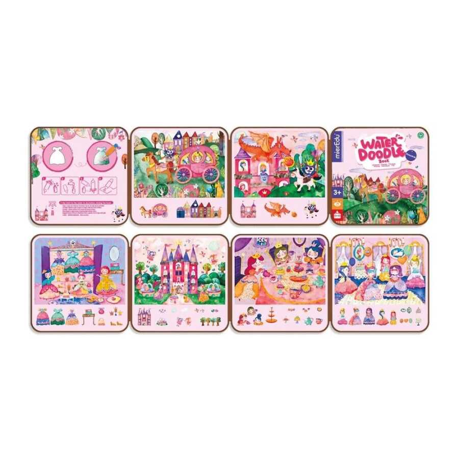 Kraliyet hayal dünyasına adım atın! Water Doodle Book – Princess, çocukları sihirli kaleleri, büyülü bahçeleri ve masalsı anları keşfetmeye davet ederken; kelimeleri, renkleri ve hikâye anlatımı kavramlarını öğrenmelerini sağlar. Su kalemini doldurup çizgilerin içini boyamaları yeterlidir—prenses yaşamına ait özenle hazırlanmış sahneler ortaya çıkar; ardından kaybolur ve tekrar tekrar yeniden belirir.