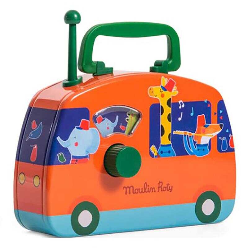 Neşeli ve renkli hayvan bandosuyla süslenmiş, teslimat minibüsü şeklinde metal bir otobüs radyosu!
