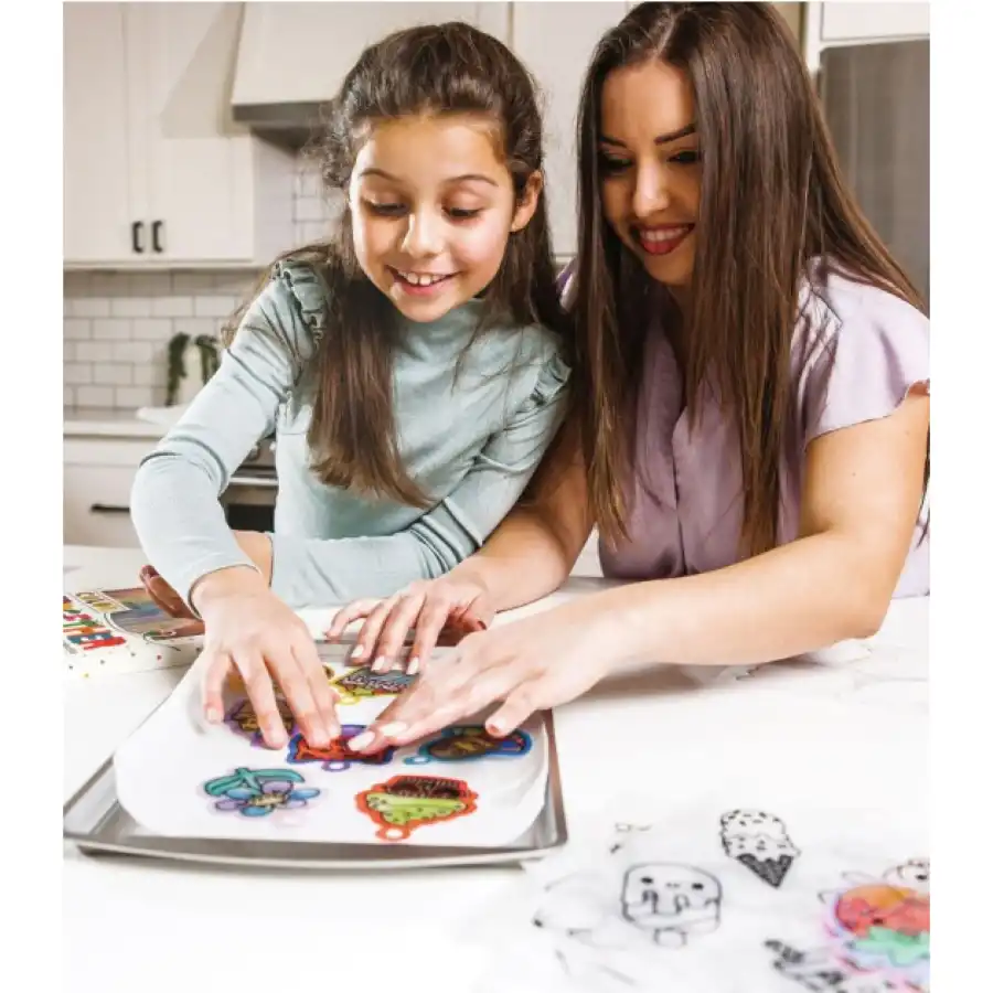 Bu küçültücü sanat seti ile sıradan bir öğleden sonrasını keyifli bir ana dönüştürün! 20 ilginç takı, üç farklı renkte kordon ve beş farklı renkte top zincir içeriyor. Tek yapmanız gereken keçeli kalemleri veya renkli kalemleri ve fırını sağlamak! Hafif plastikten üretilen bu takılar, sırt çantanıza veya anahtarlığınıza asmak için mükemmel!