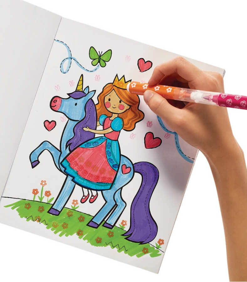 Bir tarafta eğlenceli damga tasarımları, diğer tarafında fırça uçlu kalem