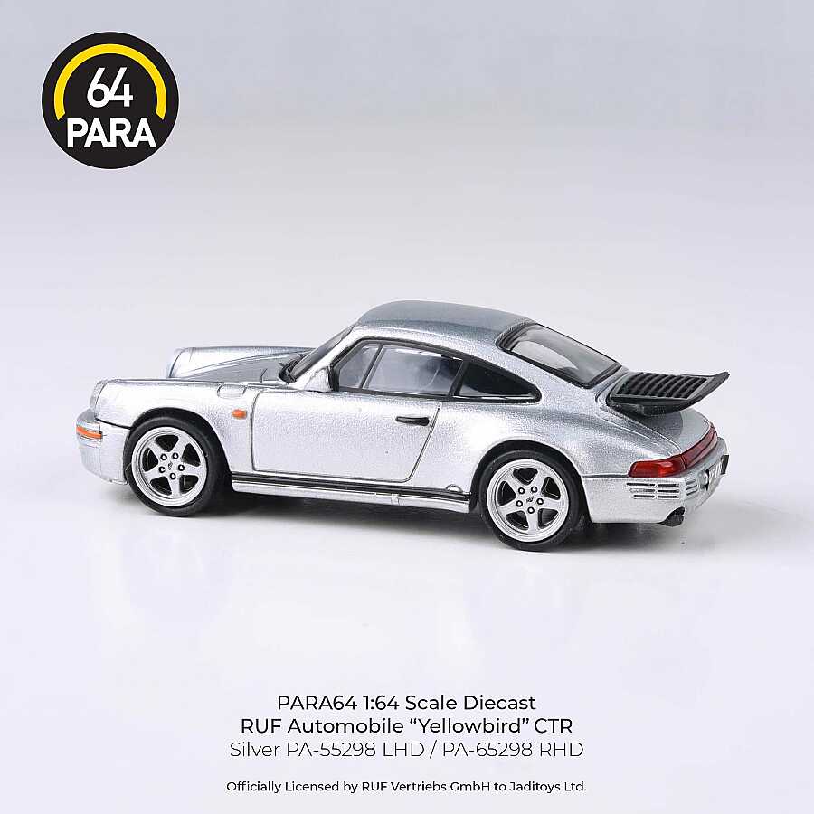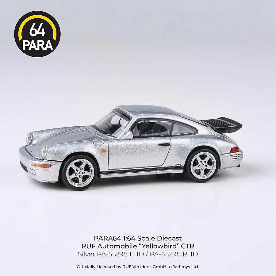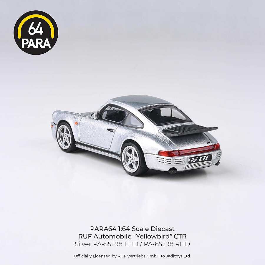 Para64 tarafından titizlikle üretilen bu 1/64 ölçekli model, otomobil tarihinin en ikonik yüksek performanslı araçlarından biri olan 1987 RUF CTR "Yellowbird"ü şık gümüş rengiyle sunuyor. RUF'un mühendislik harikası olan bu model, aerodinamik gövde yapısını ve kendine has geniş çamurluk detaylarını küçük ölçekte mükemmel şekilde yansıtır.