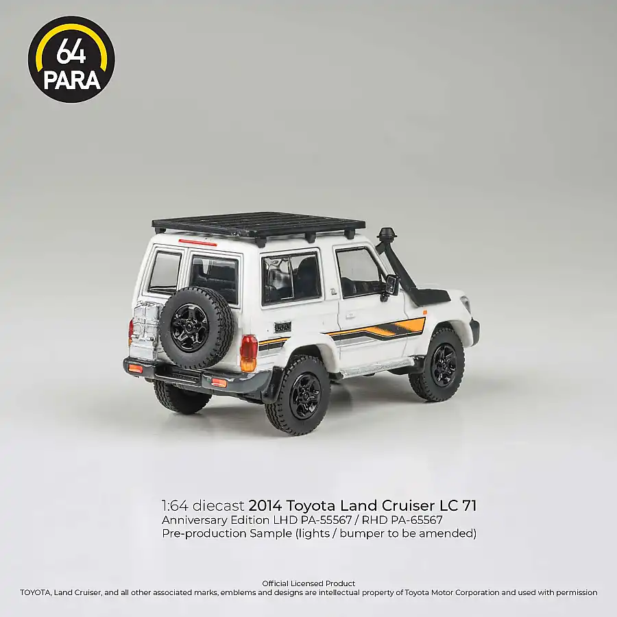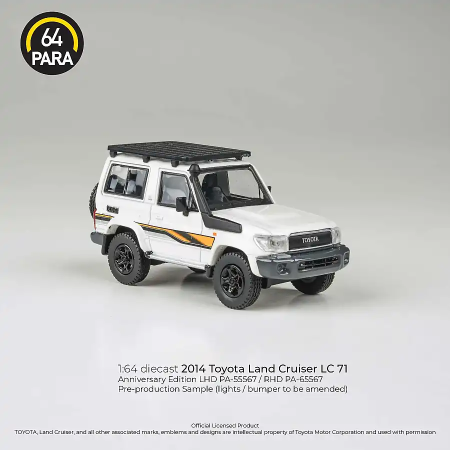Gelince Haber VerToyota Land Cruiser LC71, 70 serisinin efsanevi arazi ruhunu 2023 yıl dönümü özel tasarımıyla 1/64 ölçeğinde sunar. Beyaz rengin sadeliği ve yıl dönümüne özel detaylarıyla hazırlanan bu model, klasikleşmiş köşeli hatları ve dayanıklı duruşuyla dikkat çeker. Para64 tarafından yüksek hassasiyetle üretilen bu parça, hem gerçek arazi tutkunlarının hem de profesyonel diecast koleksiyonerlerinin favorisi olmaya adaydır. Gerçekçi gövde detayları ve kaliteli boya bitişi, efsanevi LC71'in mirasını minyatür dünyasına taşır.
