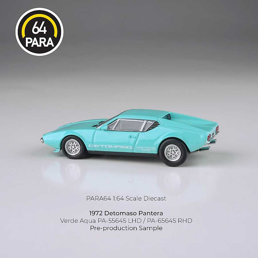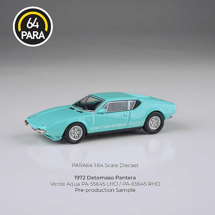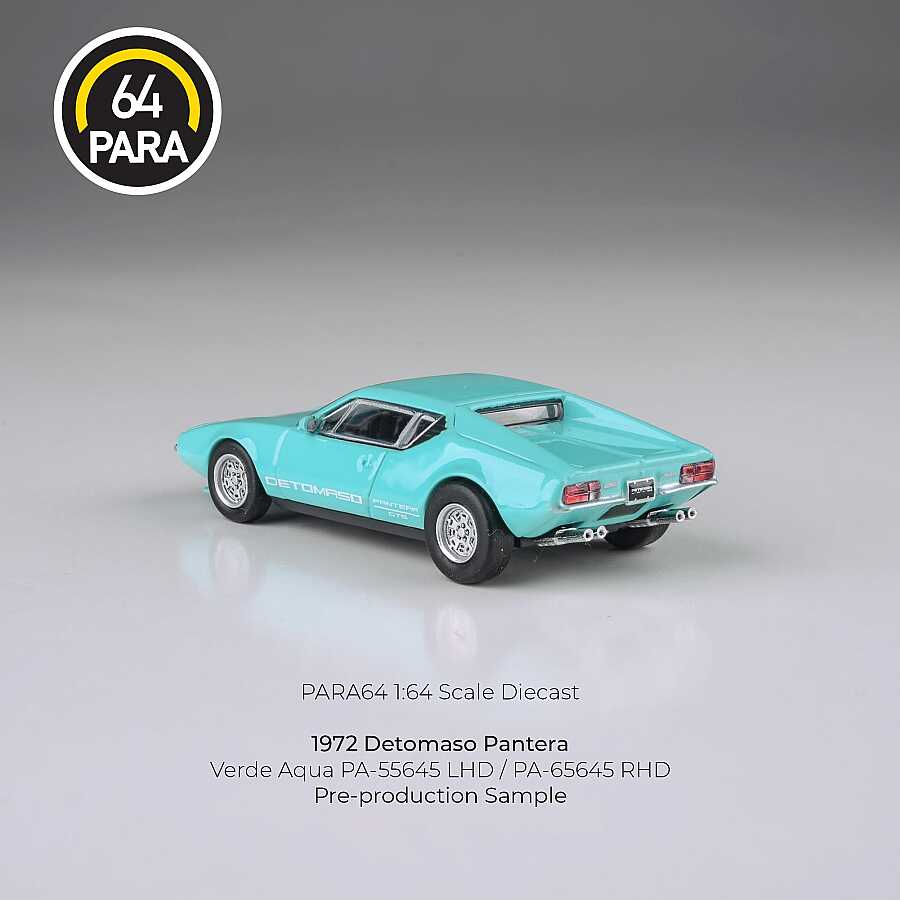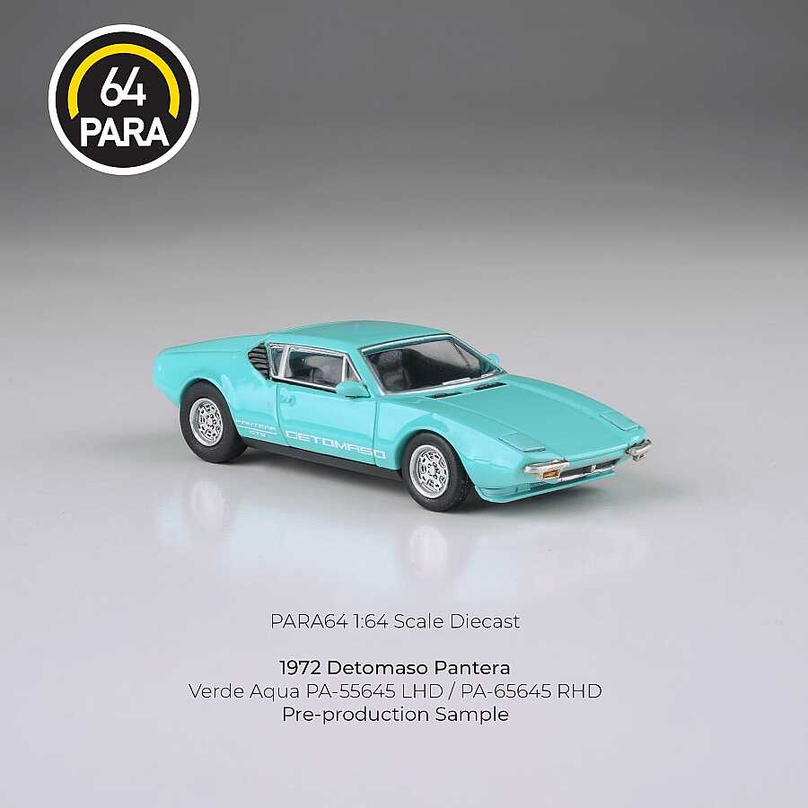 Para64'ün üstün detay işçiliği ile hayat bulan bu 1/64 ölçekli model, otomobil tarihinin en ikonik hibrit tasarımlarından biri olan 1972 De Tomaso Pantera'yı temsil ediyor. İtalyan estetiğini Amerikan V8 motor gücüyle birleştiren bu efsanevi süper spor otomobil, "Verde Aqua" (Su Yeşili) rengi ve kapalı far tasarımıyla koleksiyoncuların beğenisine sunuluyor.