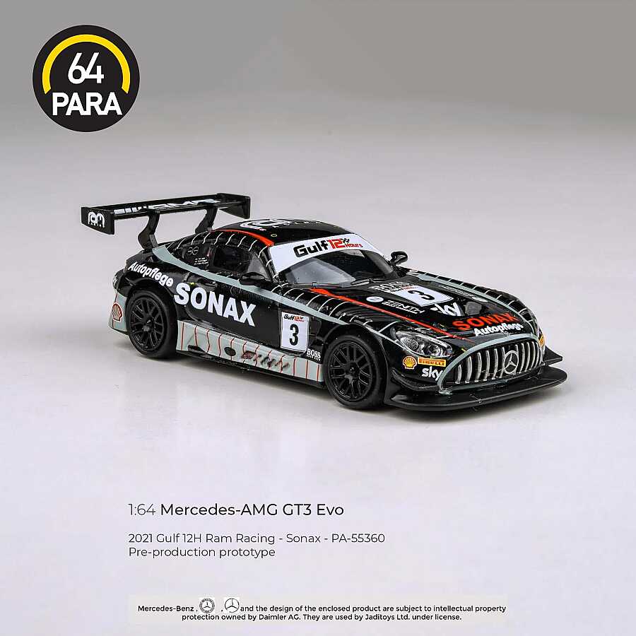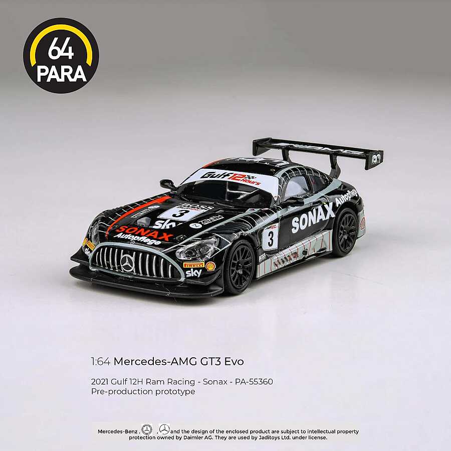 Mercedes-AMG'nin pistlerdeki gücünü temsil eden GT3 Evo, 2021 Gulf 12 Hours yarışında Ram Racing tarafından kullanılan çarpıcı Sonax tasarımıyla koleksiyoncuların beğenisine sunuluyor. Para64'ün üstün işçiliğiyle hayat bulan bu 1/64 ölçekli model, aracın aerodinamik yapısını, devasa arka kanadını ve karakteristik ön ızgara detaylarını milimetrik bir hassasiyetle yansıtıyor. Pistlerin ruhunu yansıtan canlı renkleri ve gerçeğe sadık kalınarak hazırlanan sponsor logoları, modeli sadece bir oyuncak olmaktan çıkarıp profesyonel bir sergileme parçasına dönüştürüyor. Modern yarış tarihine tanıklık etmek isteyen otomobil tutkunları için benzersiz bir detay seviyesi sunuyor.