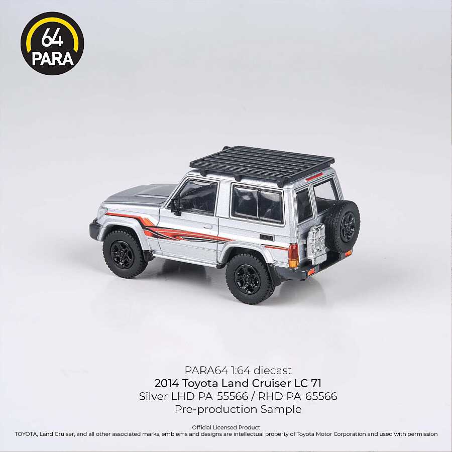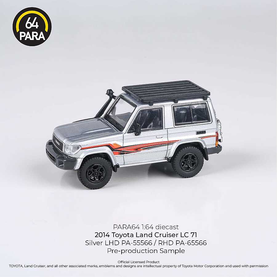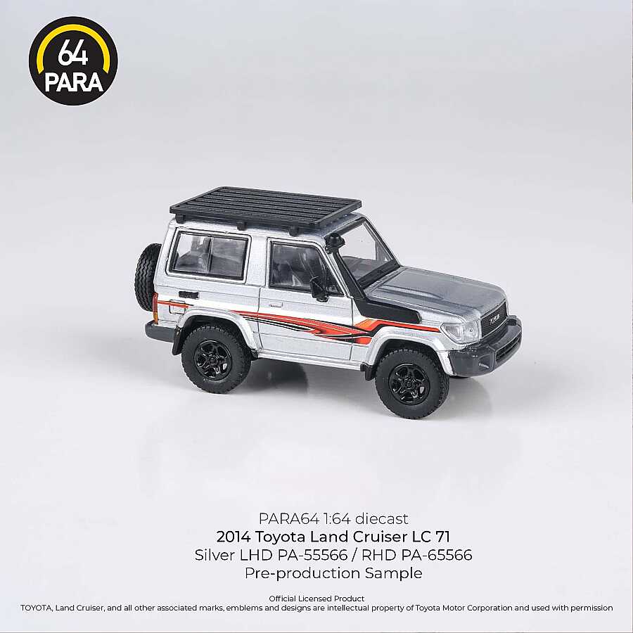 Gelince Haber VerPara64 markasının yüksek detay kalitesiyle üretilen bu 1/64 ölçekli model, Toyota'nın efsanevi arazi serisinin kısa şaseli (SWB) versiyonu olan LC71'i temsil etmektedir. 2014 model yılına ait bu araç, gümüş rengi, tavanındaki fonksiyonel görünümlü sepeti (Roof Rack) ve sağ direksiyon (RHD) detayıyla koleksiyoncular için özel bir parça olarak tasarlanmıştır.