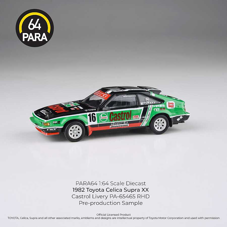 Para64 tarafından yüksek detay kalitesiyle üretilen bu 1/64 ölçekli model, 80’lerin efsanevi Japon spor otomobillerinden biri olan Toyota Celica Supra XX’i, motor sporlarının en ikonik tasarımlarından biri olan Castrol Livery ile bir araya getiriyor. 1984 model yılının karakteristik keskin hatlarını ve retro yarış ruhunu kusursuz bir şekilde yansıtan bu diecast araç, hem JDM tutkunları hem de yarış tarihine ilgi duyan koleksiyoncular için özel olarak üretilmiştir.