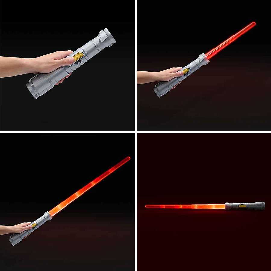Üzerindeki tek bir tuşa bas ve otomatik olarak 90 cm’ye kadar uzamasını seyret! Çok etkileyici değil mi? Düşmanları korkutan kılıcın, sen savaşırken çıkardığı harekete duyarlı savaş efektleri ile oynadığın oyunlara daha fazla eğlence ve gerçeklik katacaktır. Gövde içi LED ışık sayesinde karanlık yerlerde bile mücadeleye kaldığın yerden devam edebilirsin. Teslim olmak yok! İster arkadaşların ile galaksi savaşlarına katıl, ister karanlık tarafa meydan oku ve kahraman ol… Güç seninle olsun!