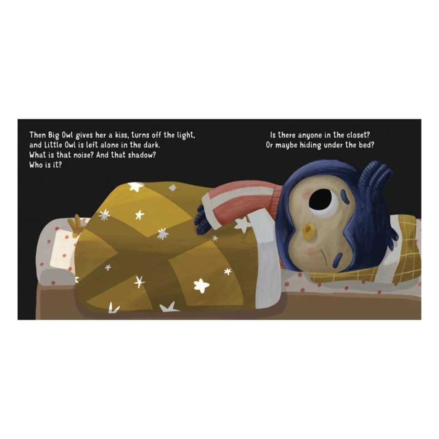 Küçük Baykuş’un uyuma vakti geldiğinde karanlık korkusu onu sarar: Yatağın altında kim var? O sesi kim çıkardı? Bu, örtülerin altına girdiğinde sorduğu sorulardan sadece birkaçıdır. Ancak Büyük Baykuş’un yardımıyla bu korkuyu nasıl yöneteceğini öğrenir ve uyku vaktini daha az korkutucu hale getiren çözümler bulur.