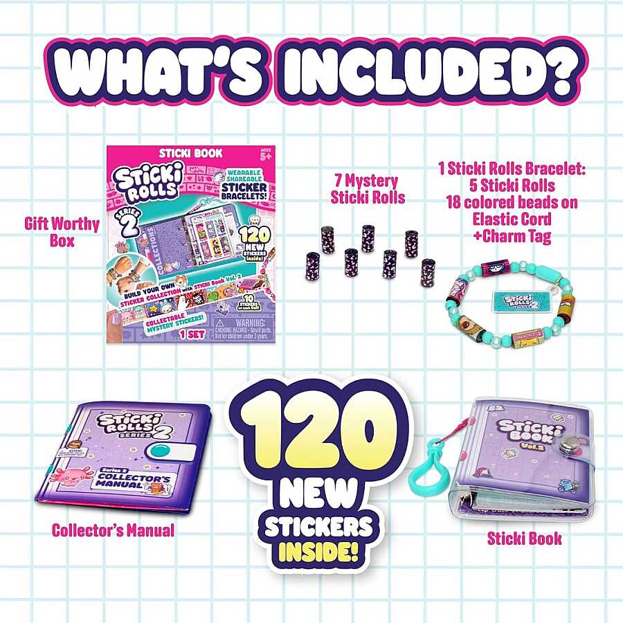 ATTACHABLE AND SHAREABLE: Each Sticki Roll on your wrist is actually a ROLL of 10 holographic mini stickers that you can pull off and share! 120 stickers are included, each featuring different cute, Kawaii characters, and you can decorate your Sticki Book for hours!