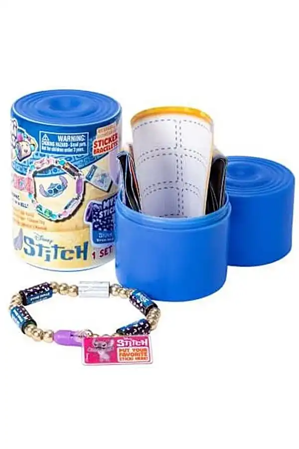 The Disney Stitch Sticki set includes 1 Stitch Sticki Rolls bracelet with a special Stitch figure sticker and a total of 50 limited edition Stitch Sticki Rolls stickers!