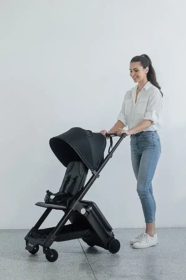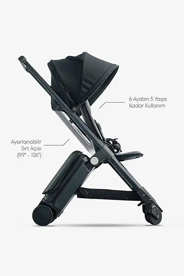 Teknik Özellikler Katlanmış Hâl (Valiz Modu): 55 × 36 × 23 cm Açılmış Hâl (Bebek Arabası Modu): 97 × 36 × 88 cm Ağırlık: Yaklaşık 7,7 kg Taşıma Kapasitesi: Maksimum 22 kg (çocuk) İç Saklama Hacmi: 18 litre Alt Sepet Yük Kapasitesi: 2 kg Sırt Açısı: 99°–126° arasında ayarlanabilir Koltuk Yüksekliği: 38 cm – 50 cm Güneşlik: UPF 50+ korumalı, su itici özellikte Süspansiyon: Ön tekerleklerde süspansiyon sistemi Malzeme: Geri dönüştürülmüş polikarbonat gövde + alüminyum çerçeve Uçak Kabini Uyumu: El bagajı standartlarına uygundur Güvenlik: 5 noktalı emniyet kemeri sistemi Öne Çıkan Özellikler 2’si 1 Arada Tasarım: Hem kabin boy valiz hem de tam işlevli bebek arabası olarak kullanılabilir.