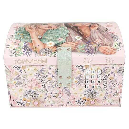 Küçük değerli eşyalar ve sırlar için: TOPModel’in gül kurusu renkli müzikli mücevher kutusu yalnızca doğru kod girildiğinde açılır (kişisel olarak ayarlanabilir ve değiştirilebilir). Açıldığında yaklaşık 20 saniye boyunca popüler Shivers şarkısını çalar. İç kısmında üç bölmeli, çıkarılabilir bir iç hazne ve bir ayna bulunur. Dış kısmında ise taş görünümlü düğmelere sahip iki ek çekmece yer alır. Çiçekli tasarım teması iç ve dış tüm detaylarda görülür: kapak üzerinde büyük çift model motifi ve her yerde zarif kelebek desenleri vardır. Piller dahildir ve değiştirilebilir.