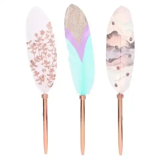 Gül altın rengi kalemlerde küçük bir logo baskısı bulunur. Üç farklı tasarımda mevcuttur: gül altın simli mor, gül altın uçlu yeşil ve mor, ve mermer desenli ve gül altın noktalı pastel. Siyah renkte yazar ve değiştirilebilir.