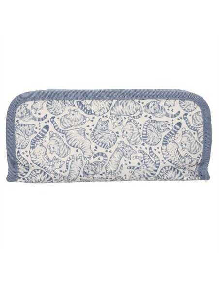 Açık mavi ve krem renkli kalem kutusu, her yerinde sevimli kedi desenleriyle süslenmiştir. Geniş ana fermuarlı bölmesi ve önde yer alan ek açılır bölmesi sayesinde kırtasiye malzemeleri için bolca alan sunar. Çıkarılabilir küçük ekstra cebi ve kedi figürlü, deri görünümlü kapak detayıyla dikkat çeker.