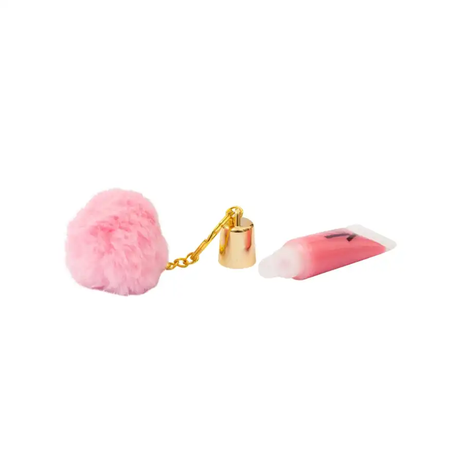 The lip gloss comes attached to a keychain, making it easy for children to carry their products around.