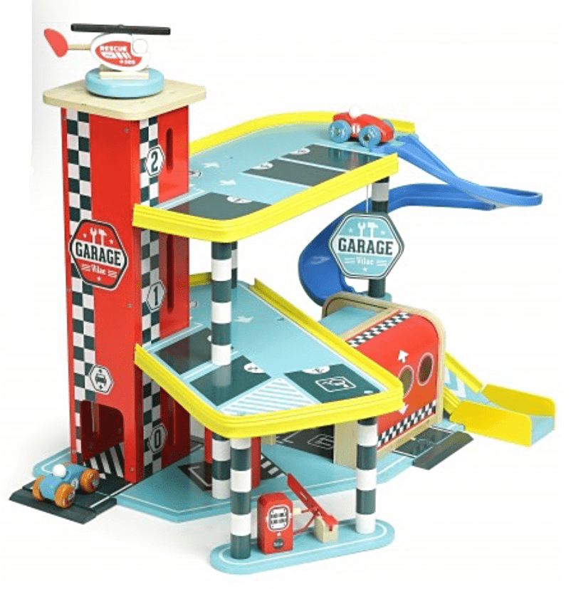 Geleneksel ahşap işçiliğini hareketli mekanizmalarla birleştiren bu set; manuel olarak kontrol edilebilen bir asansör, helikopter pisti, yakıt pompası ve geniş park alanlarından oluşur. Çocuklar araçlarını katlar arasında taşıyabilir, asansör mekanizmasıyla koordinasyon becerilerini geliştirebilir ve kendi şehir senaryolarını kurgulayabilirler. Bu süreç, miniklerin ince motor becerilerini, el-göz koordinasyonunu ve hikaye anlatma yeteneklerini doğrudan destekler. Yüksek kaliteli, doğal ahşap malzemesi ve çocuk dostu boyalarıyla güvenli bir oyun ortamı sunan bu yapı, nesiller boyu keyifle oynanabilecek bir klasik niteliğindedir.