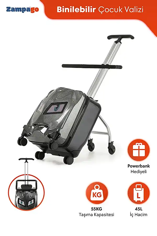 Zampago Oturabilir Çocuk Valizi Minik Gezginlerin Tatil Yol Arkadaşı! Zampago Oturabilir Çocuk Valizi, çocuklar için özel olarak tasarlanmış hem eğlenceli hem işlevsel bir seyahat çözümüdür.