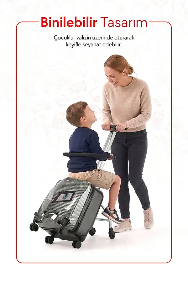 Seyahatlerde çocuklarınız kendi valizini çekerken hem eğlenir hem de yorulduklarında valizlerinin üzerine oturarak dinlenebilir.