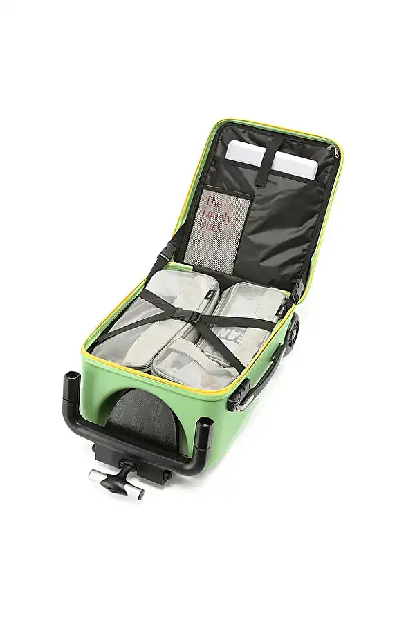 Hafif gövdesi ve kolay yönlendirilebilir tekerlek sistemi sayesinde çocuklar valizini hem çekebilir hem de üzerine binip sürebilir! Öne Çıkan Özellikler: 2’si 1 arada tasarım: Valiz + scooter kombinasyonu Dayanıklı ABS malzeme: Darbelere karşı koruma sağlar Çocuk dostu tasarım: Ergonomik tutma kolu, güvenli oturma alanı Geniş iç hacim: Kıyafet, oyuncak ve kişisel eşyalar için ideal Seyahat dostu boyut: Kabin içine uygun ölçüler Renk: Yeşil – Sarı detaylı Marka: Zampago Küçük kaşiflerin en sevimli yol arkadaşı Zampago Monster valiz ile seyahat artık çok daha eğlenceli.